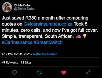 What a relief! I needed new cover urgently, and getcarinsurance.co.za made it effortless. The quote call was professional and the price was just right.