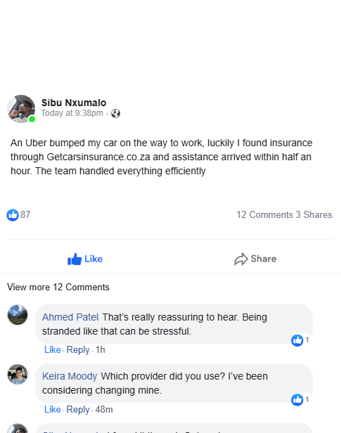What a relief! I needed new cover urgently, and getcarinsurance.co.za made it effortless. The quote call was professional and the price was just right.